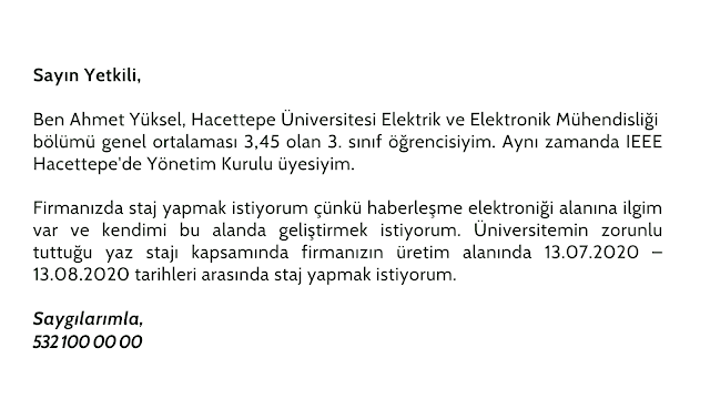 Öncelikle şunu belirtmeliyim ki; stajyer ön yazısında resmi bir dil kullanma kısmı esnetilebilir. (tabi başvurduğunuz firmayı da göz önünde bulundurarak.)